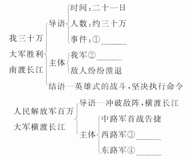 ①渡过长江 ②势如破竹 ③所向披靡 ④战况辉煌