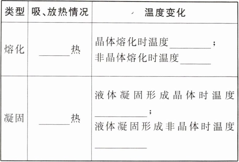 |熔化|____热|晶体熔化时温度____;