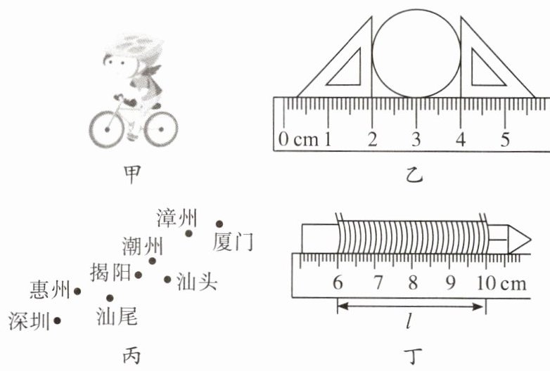 C.图丙中测量地图上路线的长度,用一根有弹性的棉线与路线重合测量