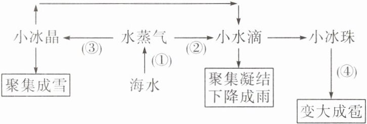 8. 通过水的三态变化,地球上的水不停地循环,如图所示。下列关于水循环各过程说法正确的是( )