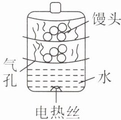 3. 如图所示,用电蒸锅蒸馒头时,电热丝加热使水______(填物态变化名称),产生高温水蒸气,高温水蒸气经过多层蒸格向上升,遇到冷的蒸笼盖时,大量水蒸气发生______(填物态变化名称)现象,______(选填“吸收”或“放出”)很多热量。