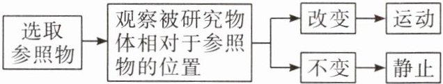 |选取参照物→观察被研究物体相对于参照物的位置→改变→运动;不变→静止|