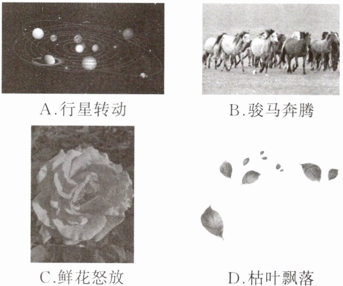 1. 物理学是研究自然界物质运动规律的一门学科,机械运动是自然界最普遍的一种运动。如图所示的各种现象中,不属于机械运动的是( )