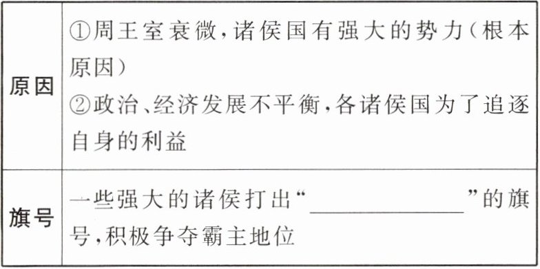 |旗号|一些强大的诸侯打出“______”的旗号,积极争夺霸主地位|