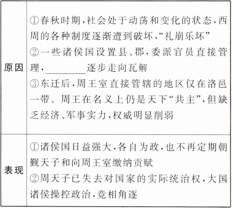 |原因|①周王室衰微,诸侯国有强大的势力(根本原因)