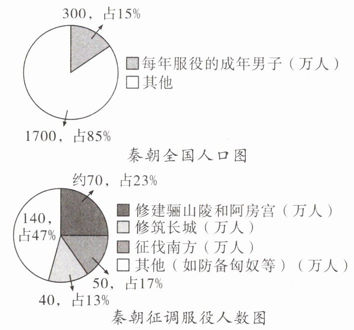 秦朝全国人口图:每年服役的成年男子($300$万人,占$15\%$),其他($1700$万人,占$85\%$)