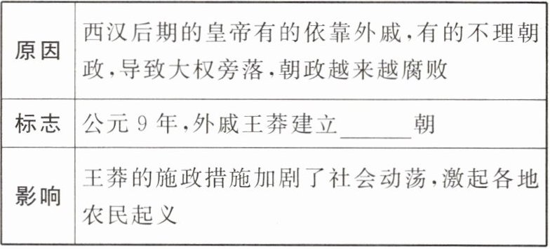 |原因|西汉后期的皇帝有的依靠外戚,有的不理朝政,导致大权旁落,朝政越来越腐败|