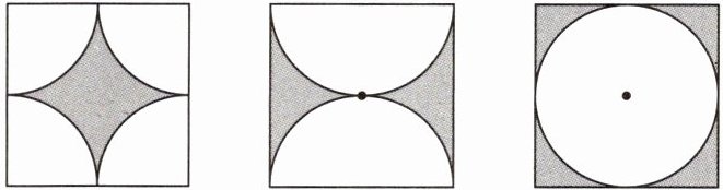 下面三个正方形的边长都是 $ 4 \mathrm{cm} $,阴影部分的面积相等吗?为什么?