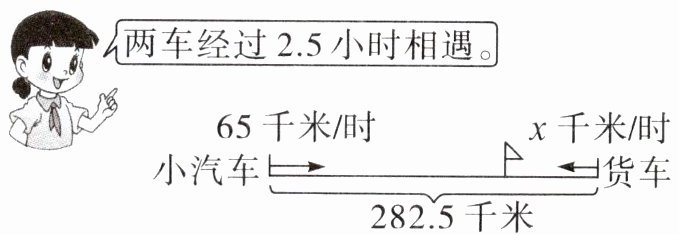 2. 小汽车行驶的速度 货车行驶的速度 (65+x)×2.5=282.5