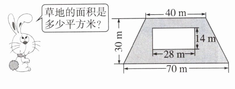 4. 一块梯形草地中间有一个长方形的游泳池(如图所示)。