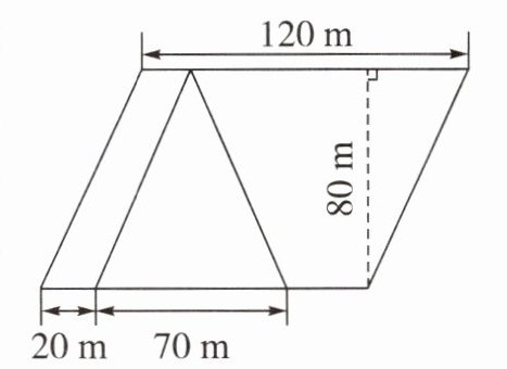 西红柿:20×80=1600(m²) 茄子:70×80÷2=2800(m²) 辣椒:[(120-20-70)+(120-20)]×80÷2=5200(m²)