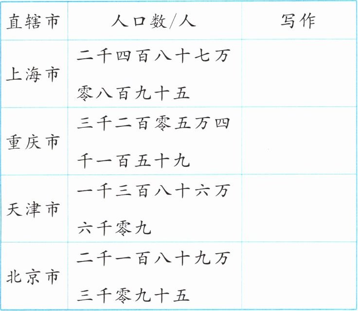 |直辖市|人口数/人|写作|