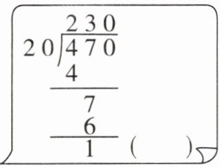 $\begin{array}{r}230\\ 20\enclose{longdiv}{470}\\ 4\quad\\ \hline 7\\ 6\quad\\ \hline 1\end{array} $