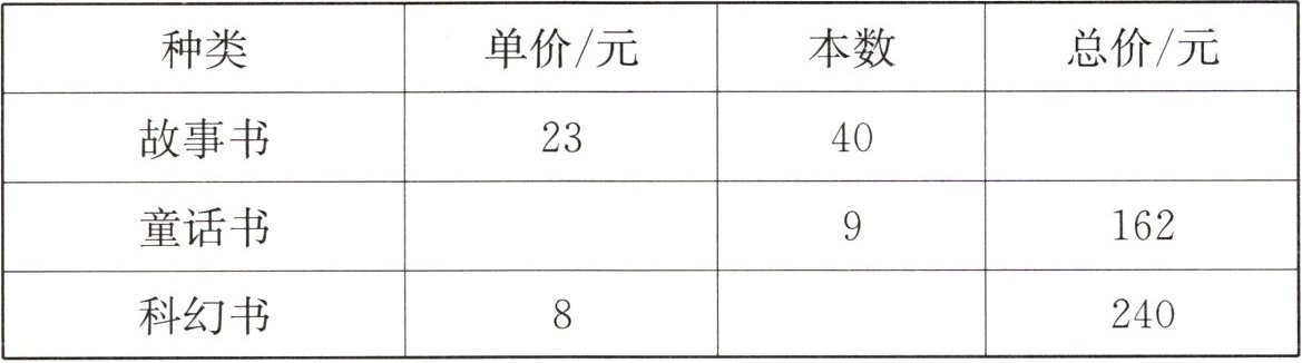 故事书总价920,童话书单价18,科幻书本数30;步行路程1750米,乘公交车速度40千米/时,骑电动车路程225千米