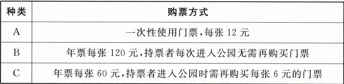 (2)某游客一年中进入该公园共有12次,选择哪种购票方式比较优惠?请通过计算说明.