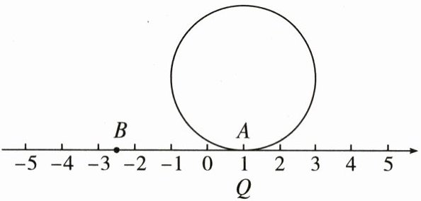 (4)如图,半径为2的圆上有一点$Q$落在数轴上的点$A$处,求将圆在数轴上向右滚动(无滑动)一周后点$Q$所处的位置在数轴上所表示的数.