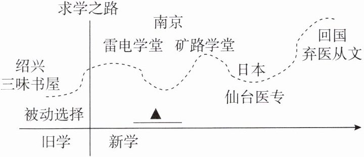 2. 小尚在阅读《朝花夕拾》时,发现可以通过鲁迅先生的“求学之路”,探索他的心路历程,于是绘制了示意图,请你一起参与完成相应的任务。