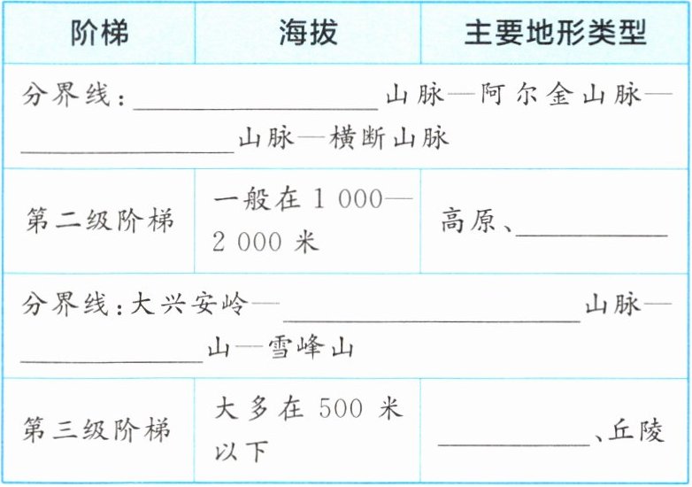 |第二级阶梯|一般在1000—2000米|高原、______|