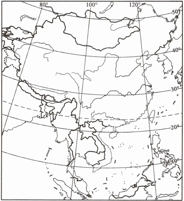 8. (探究题)某地理兴趣小组开展了以“从纬度位置和海陆位置角度认识我国地理位置的优越性”为主题的探究活动。结合下图,完成下列各题。