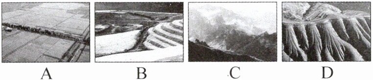 6. 山地是我国占比最大的地形类型。下列四幅基本地形类型景观图中,表示山地景观的是( )