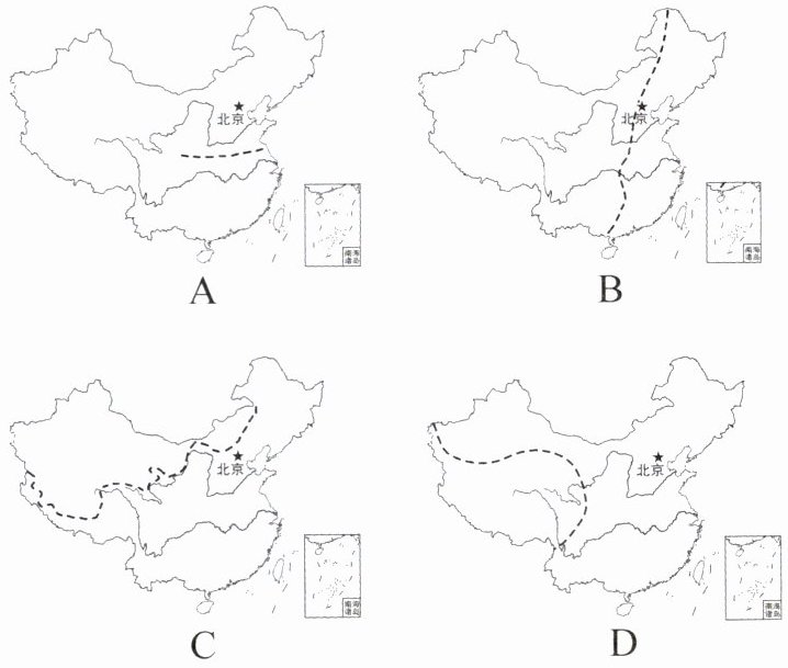 3. 下图中能正确表示我国地势第二、三级阶梯分界线的是( )