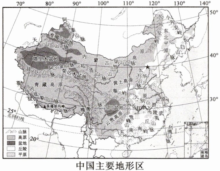 4. 三大丘陵:____丘陵、山东丘陵、东南丘陵。