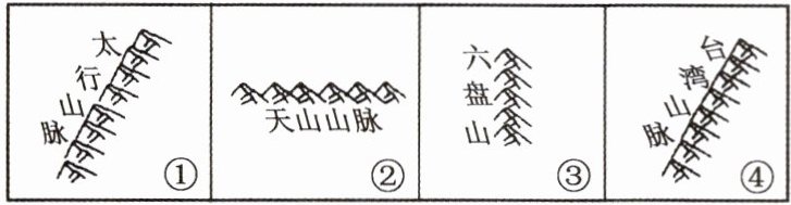 2. 读我国四条山脉示意图,图中山脉自东向西依次排序,正确的是( )