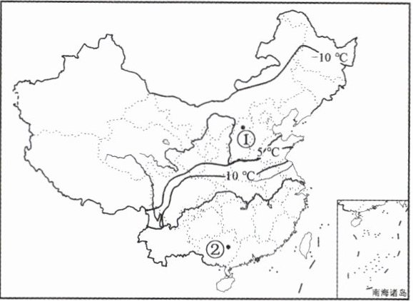 (1)当日,我国最低气温-10℃等温线经过的两个省级行政区是____、____(填全称)。