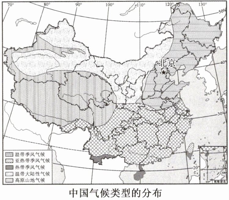 (3)秦岭—淮河一线是______气候和亚热带季风气候的分界线。