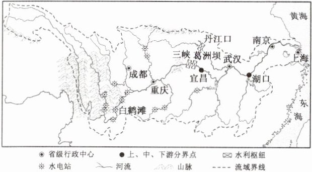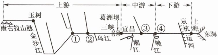 (综合思维)长江是我国最大的河流,也是我国东西交通的大动脉。长江干支流蕴藏着丰富的水能资源。读长江干支流示意图,完成 5—7 题。