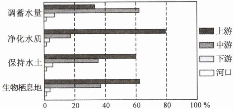 (综合思维)长江经济带坚持生态优先、绿色发展。读长江各河段四项生态保护功能强度示意图,完成 13—15 题。