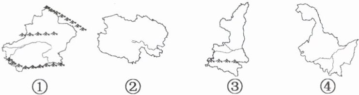8.A(提示:图中省级行政区①是新疆,其地形特点可概括为“三山夹两盆”,“三山”指的是阿尔泰山脉、天山山脉和昆仑山脉,“两盆”指的是准噶尔盆地和塔里木盆地;②是青海,主要位于我国地势第一级阶梯,青藏高原有“世界屋脊”之称;③是陕西,其南部呈东西走向的山脉为秦岭,秦岭北侧为黄土高原,南侧为四川盆地;④是黑龙江,地形以平原、山地为主) 9.B