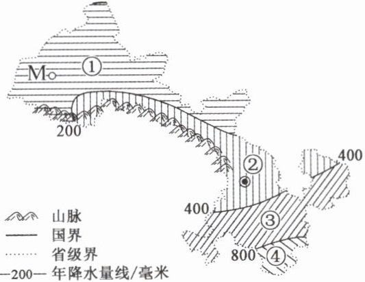 12. M 处的敦煌壁画能够保存至今的主要原因是该地区气候干燥,壁画不容易受潮变质。推测该地区的主要气候类型为( )