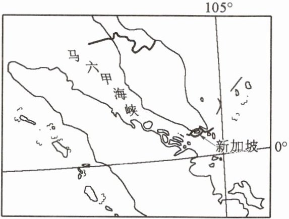 (区域认知)新加坡平均年降水量约2400毫米,但其水资源仍然十分匮乏。为保障水资源供给,新加坡政府实施了“四大水喉”计划,即收集本地雨水、境外购水、淡化海水和开发新生水(污水净化),拟于2060年实现水资源完全自给自足。下图为新加坡位置示意图,据此完成11 - 12题。