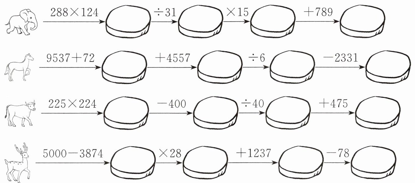 1. 借助计算器帮小动物过河。
