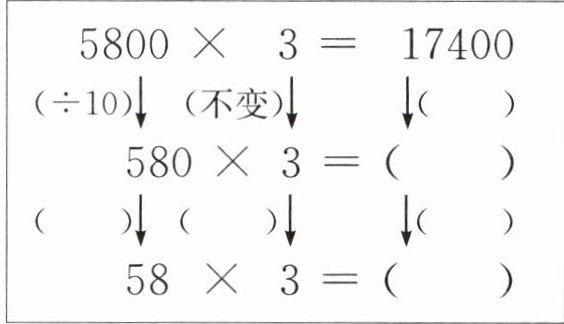 ×10,840;不变,×10,×10,8400;÷10,1740;÷10,不变,÷10,174;×3,×3,60;不变,×10,×10,600;÷2,243;×10,×10,×100,24300