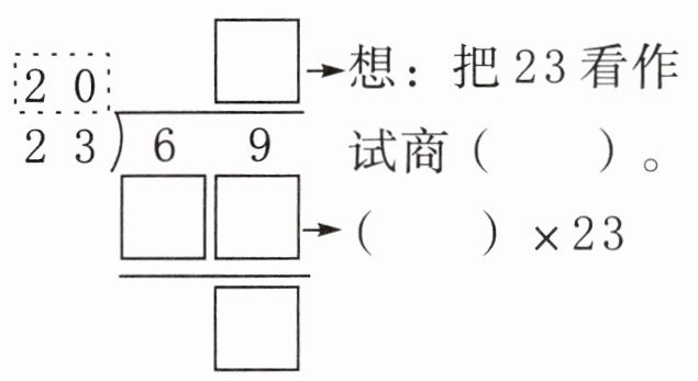 想:把 23 看作( ),试商( )。
