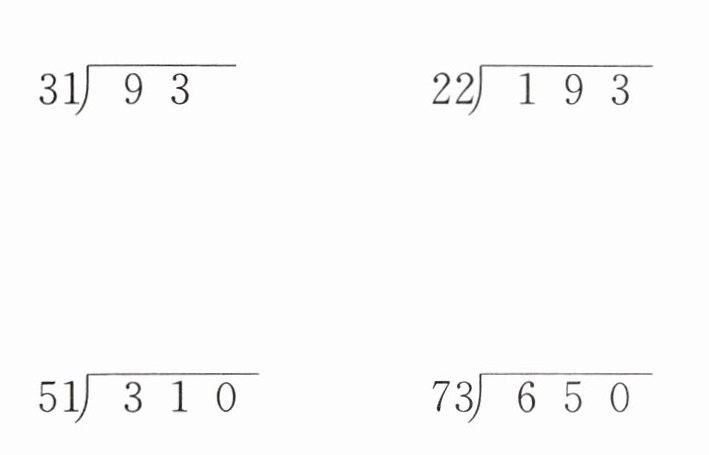 试商:把$51$看作$50$,$310÷50$,试商$6$,$51×6 = 306$,$310 - 306 = 4$,所以$310÷51 = 6\cdots\cdots4$