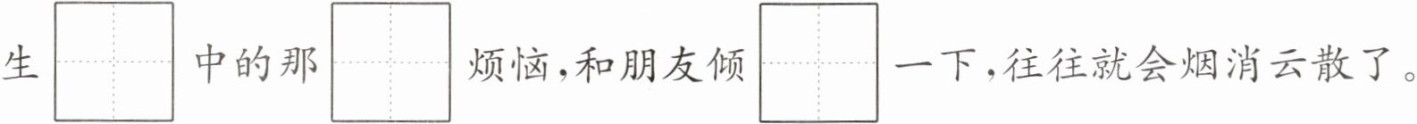 生$\begin{array}{|c|}\hline huó \\ \hline \end{array}\\ \hline 中的那\begin{array}{|c|}\hline xiē \\ \hline \end{array}\\ \hline $烦恼,和朋友倾$\begin{array}{|c|}\hline sù \\ \hline \end{array}\\ \hline $一下,往往就会烟消云散了。