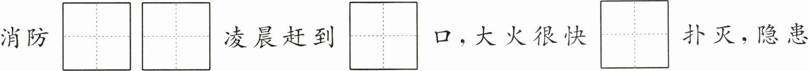 消防$\overset{\mathrm{y}\mathrm{u}á\mathrm{n}}{□ }\overset{\mathrm{y}ú}{□ }凌晨赶到\overset{\mathrm{c}ū\mathrm{n}}{□ }$口,大火很快$\overset{\mathrm{b}è\mathrm{i}}{□ }$扑灭,隐患$\overset{\mathrm{x}\mathrm{i}ā\mathrm{o}}{□ }$除了。