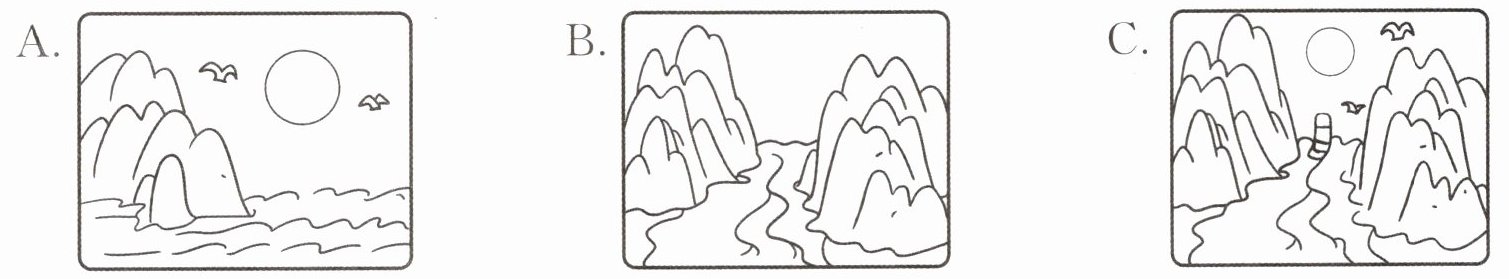 1. 下列图画与《望天门山》中描绘的画面最相近的一项是( )。
