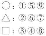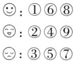 按形状分 按表情分○:①⑤⑨ ☺:①⑥⑧△:②⑥⑦ ☹:②④⑨□:③④⑧ 😊:③⑤⑦
