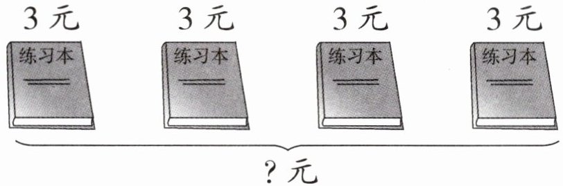 2. 每支笔6元,买4支笔和3本书,买笔一共花了( )元。