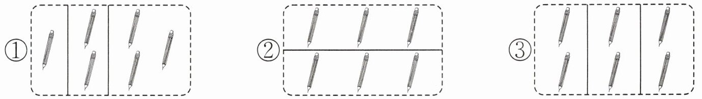 3. 把6支铅笔平均分给3名同学,下面分法正确的是( )。