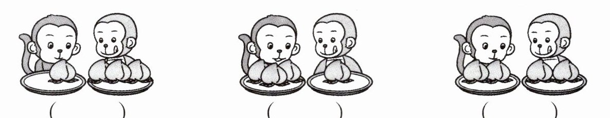 一、小猴兄弟俩分享劳动果实,哪种分法是平均分?在( )里打“√”。