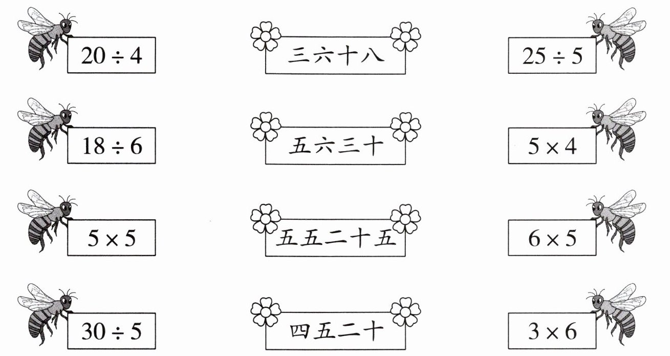 $20÷5= (\quad)$ 想:$(\quad)$五二十,商是$(\quad)$。
