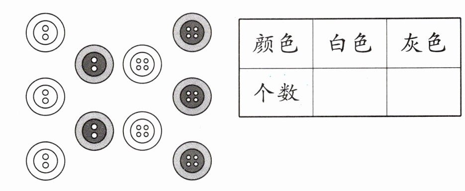 1. 先按颜色分类,再把结果记录在表格中。