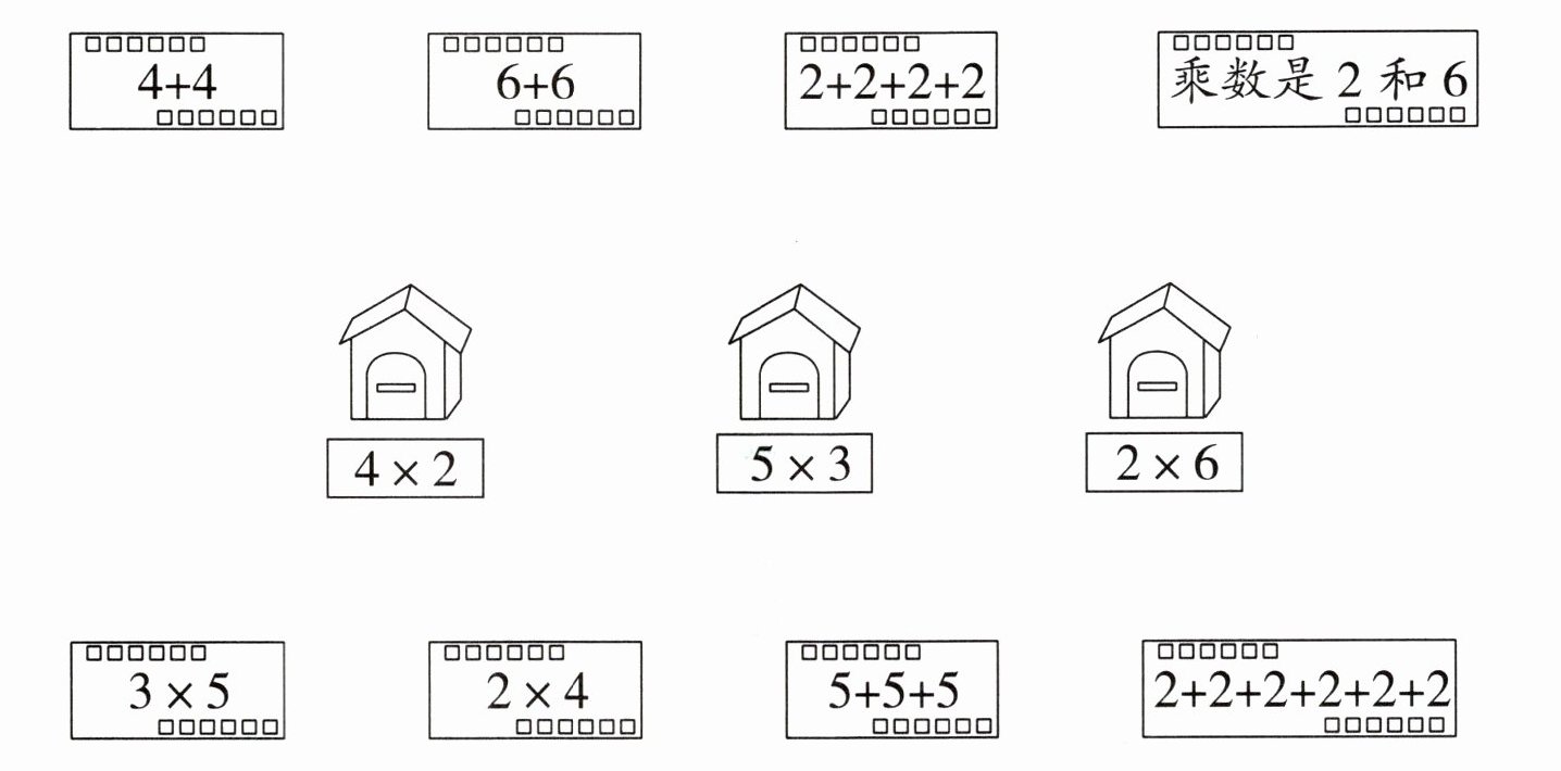 | $4 + 4$ | $6 + 6$ | $2 + 2 + 2 + 2$ | 乘数是 $2$ 和 $6$ |