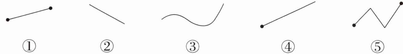 1. 下面的图形中,( )是直线,( )是线段,( )是射线。(填序号)