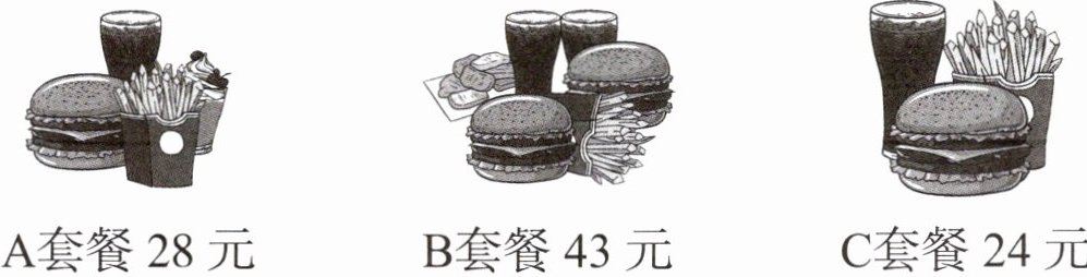 张老师带100元钱去吃快餐,请你算一算,他带的钱够吃下面全部套餐吗?